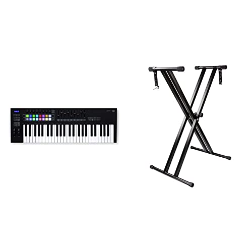 Novation Launchkey 49 [MK3] MIDI Keyboard Controller & RockJam RJX29 Double Braced Adjustable Keyboard Stand with Locking Straps, Black