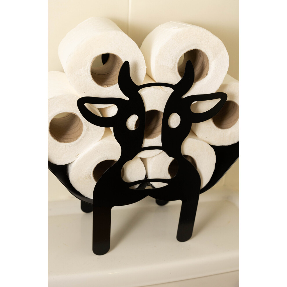 Cow Toilet Roll Holder Novelty Storage Gift Free Standing Bathroom Metal Decor