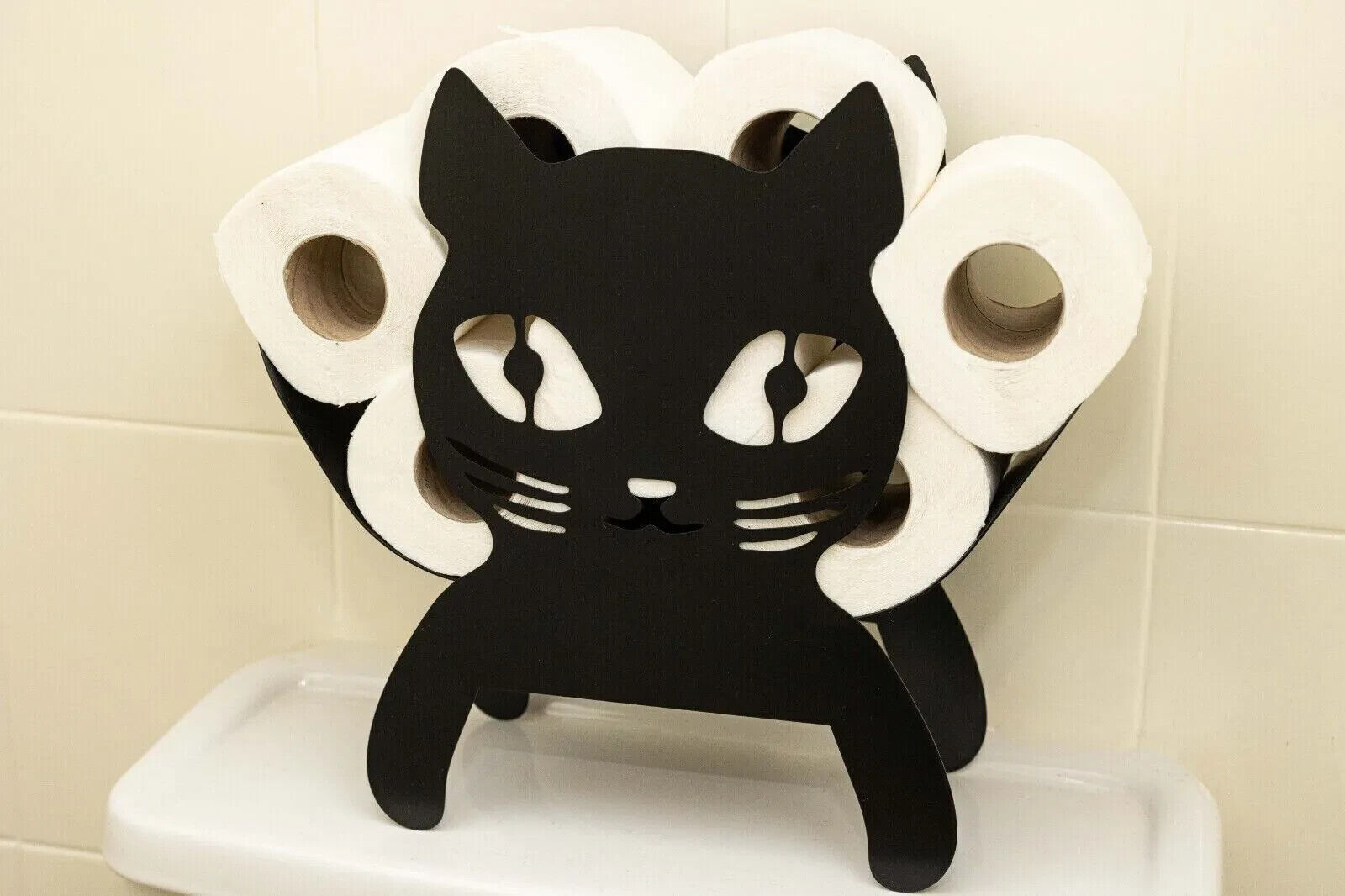 Black Cat Toilet Roll Holder Bathroom Storage Metal Display Kitten Novelty Gift