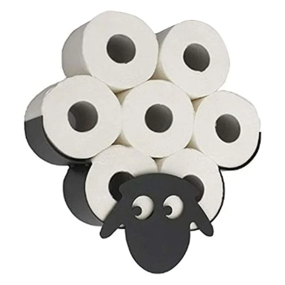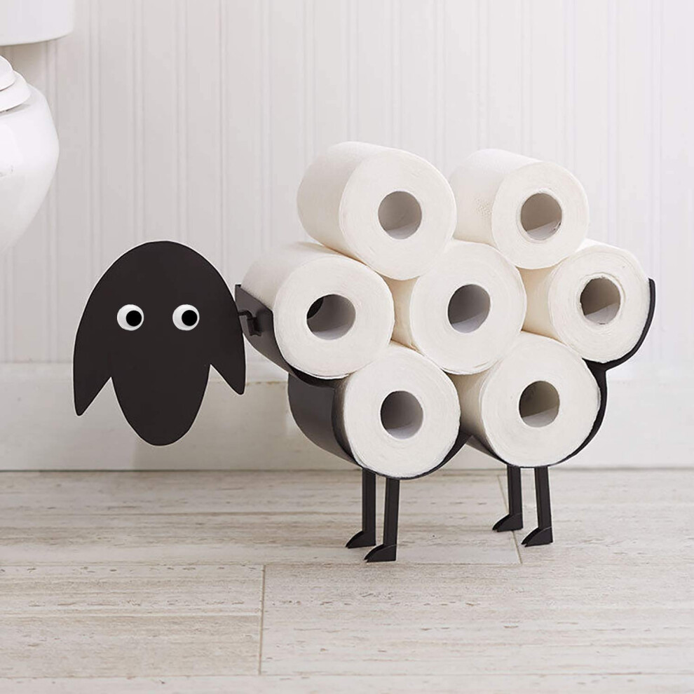 Black Metal Sheep Toilet Roll Holder â Wall-Mounted or Free-Standing, 8-Roll Capacity, Matte Finish, Novelty Bathroom Decor