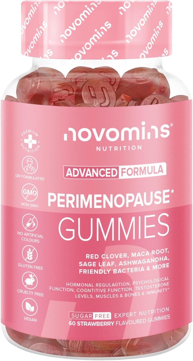 Perimenopause Gummies - Perimenopause Supplements with Red Clover, Sage Leaf, Zinc, Ashwagandha - Sugar-Free - Vegan - Peri & Menopause Supplements - Hormone Balance for Women - 60 Gummies - Novomins