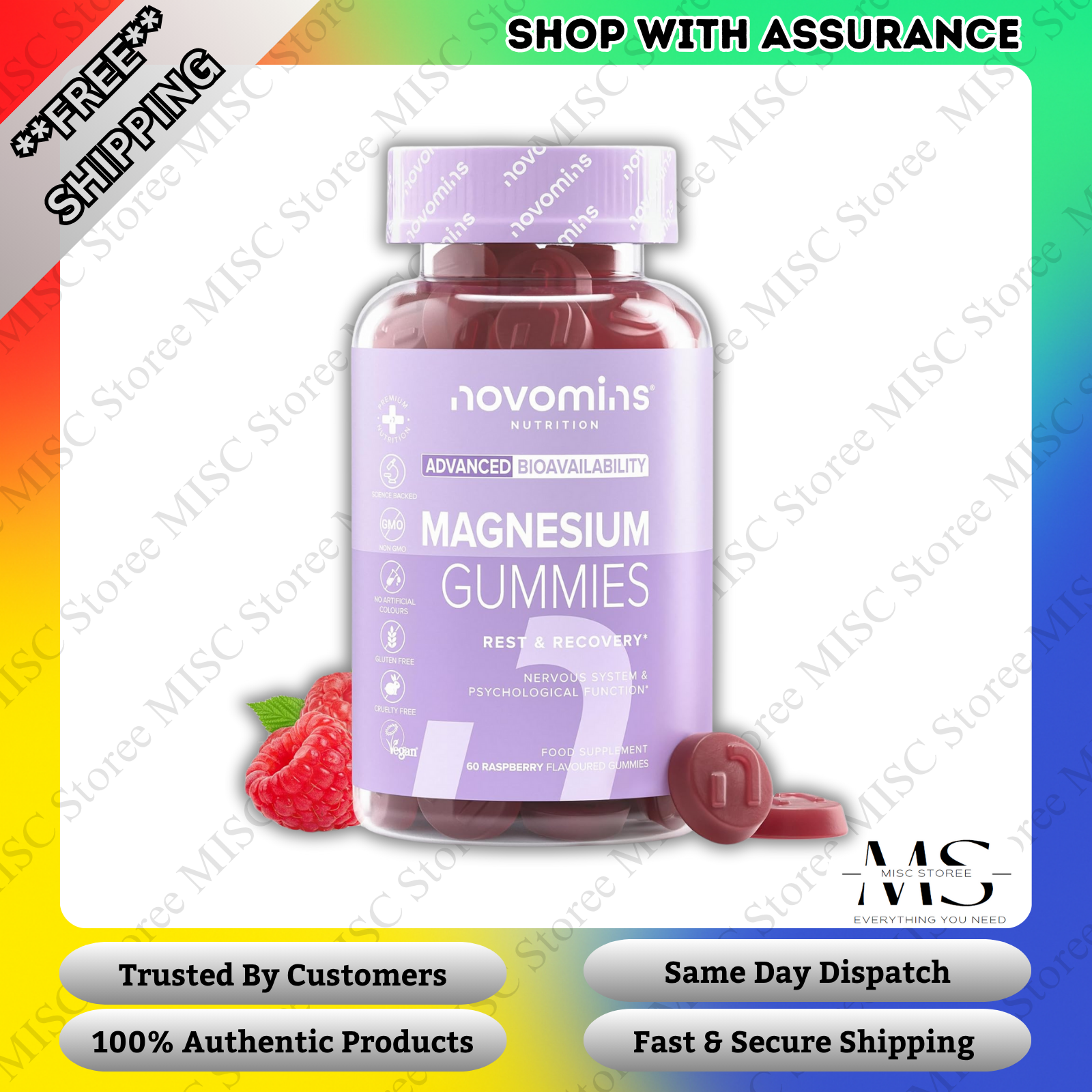 Novomins Magnesium Gummies for Adults 60 Vegan Raspberry – Brand New