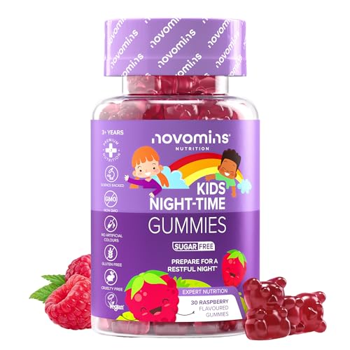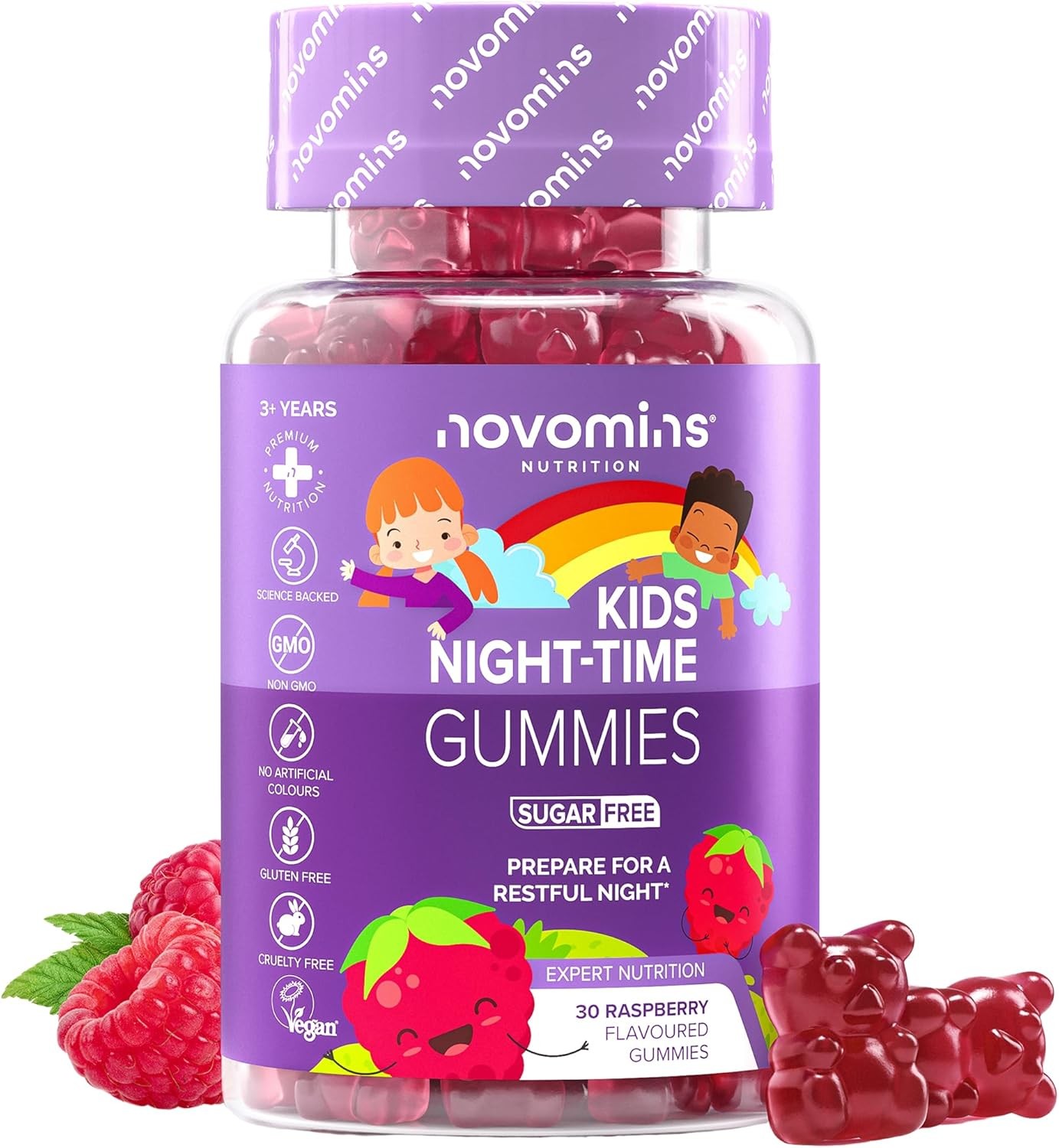 Kids Night-Time Gummies - 30 Gummies - Magnesium, L-Theanine, Vitamin B Complex - Vegan & Gluten-Free - Suitable for Ages 3+ - Novomins