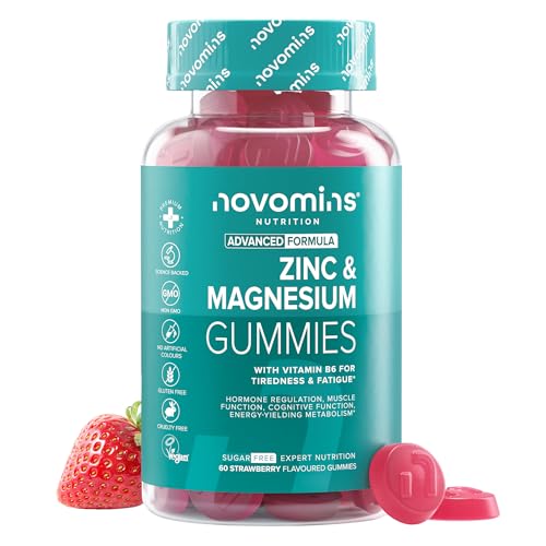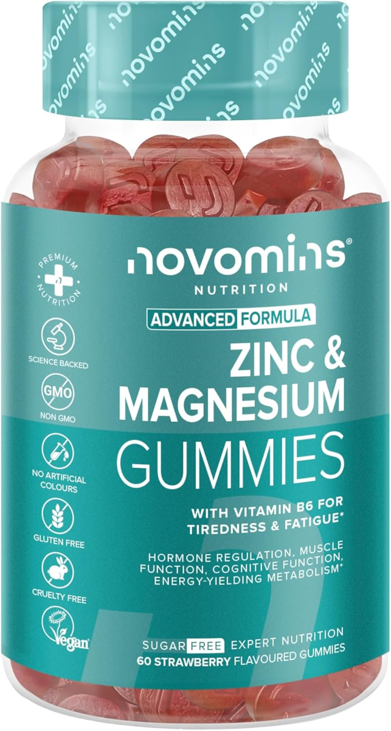 Zinc & Magnesium Gummies - Sugar Free - 60 Gummies - Supplements for Men & Women - Muscles, Bones & Energy - with Vitamin B6 - High Strength Magnesium & Zinc Supplements - Novomins