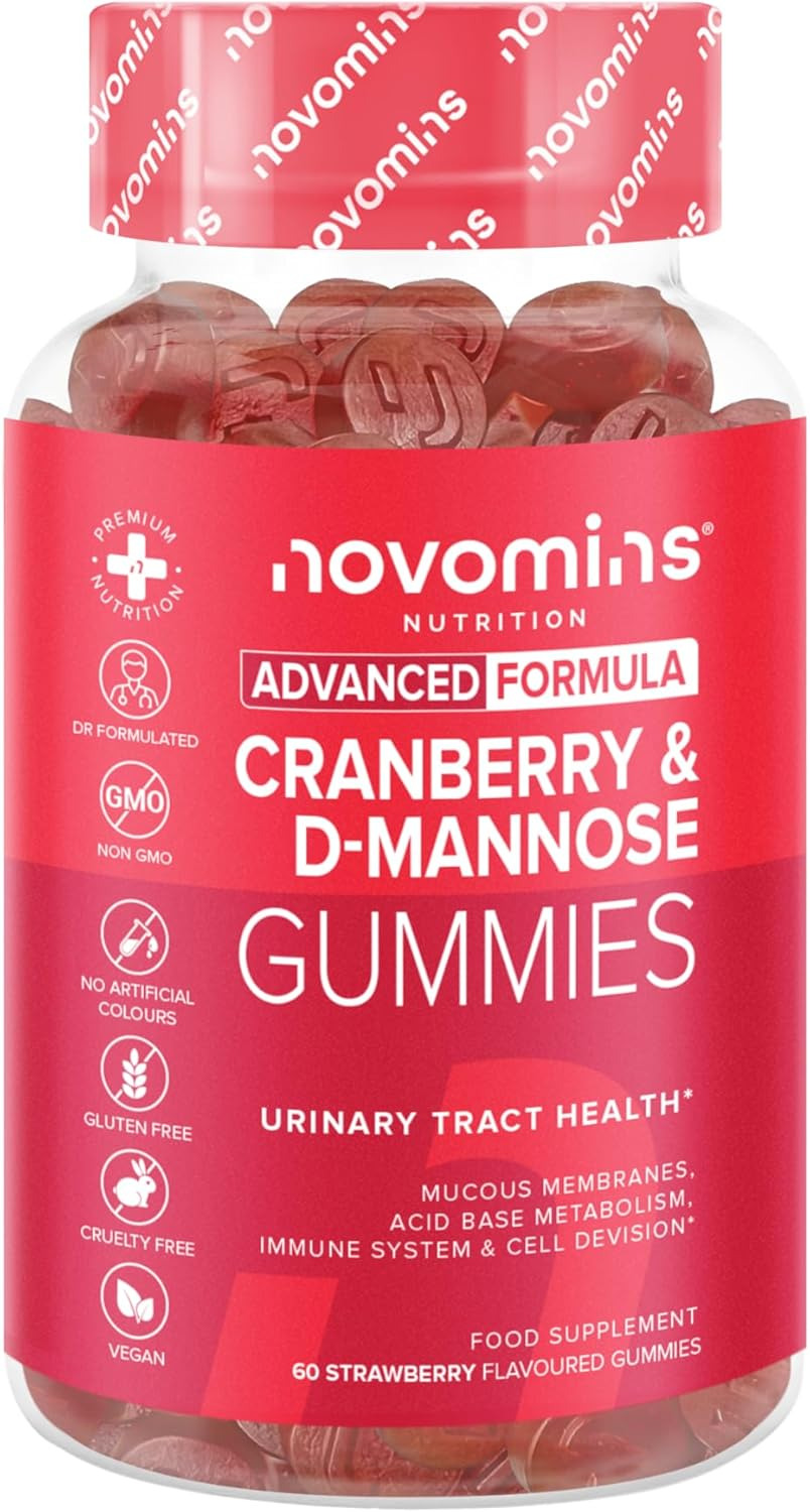 Cranberry & D Mannose Gummies - Urinary Tract Health & Bladder Control - Vegan - Alternative to Cranberry Tablets, Juice, or D Mannose Powder - Inulin, Magnesium - 60 Gummies - Novomins