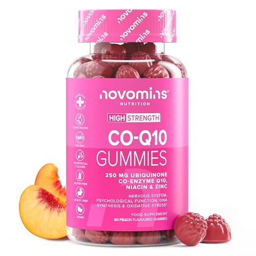 CoQ10 Gummies – 250mg High Strength CoQ10 Supplement – 60 Gummies – Coenzyme Q10 with EPA, DHA, Vitamin B3 & Zinc - Co Enzyme CQ10 Naturally Fermented High Absorption CQ10 Supplement - Novomins