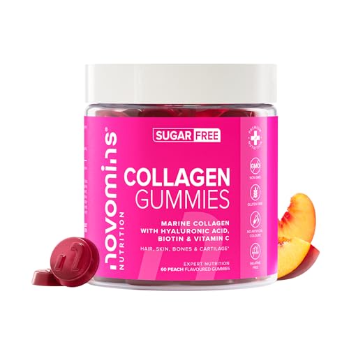 Collagen Gummies - Sugar Free - with Hyaluronic Acid, Vitamin C & Biotin - Collagen Supplements for Women & Men - More Convenient Than Collagen Powder - 60 Marine Collagen Gummies - Novomins