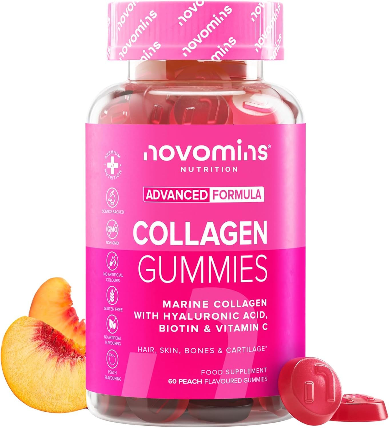 Novomins Marine Collagen Gummies with Hyaluronic Acid, Vitamin C & Biotin - 60 C