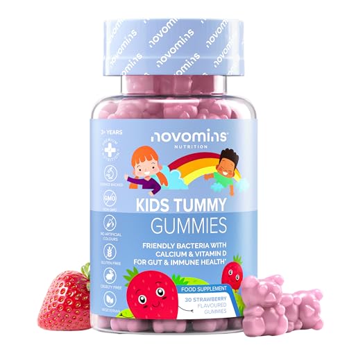 Kids Probiotic Gummies - 2 Billion Probiotics - 1 Month Supply - Kids Tummy Gummies - Includes Vitamin D & Calcium for Childrens Gut Health - Vegetarian Formula - 30 Gummies - by Novomins