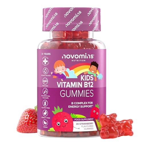 Kids Vitamin B12 Gummies - Vitamin B Complex - with B1, B2, B6, Biotin, Folic Acid - Energy & Metabolism Support - Alternative to Vitamin B12 Tablets - 30 Gummies - Vegan - Novomins