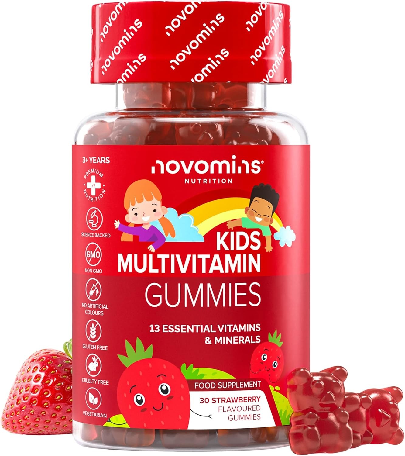 Novomins Kids Multivitamin Gummies - 13 Essential Vitamins - 30 Count Strawberry