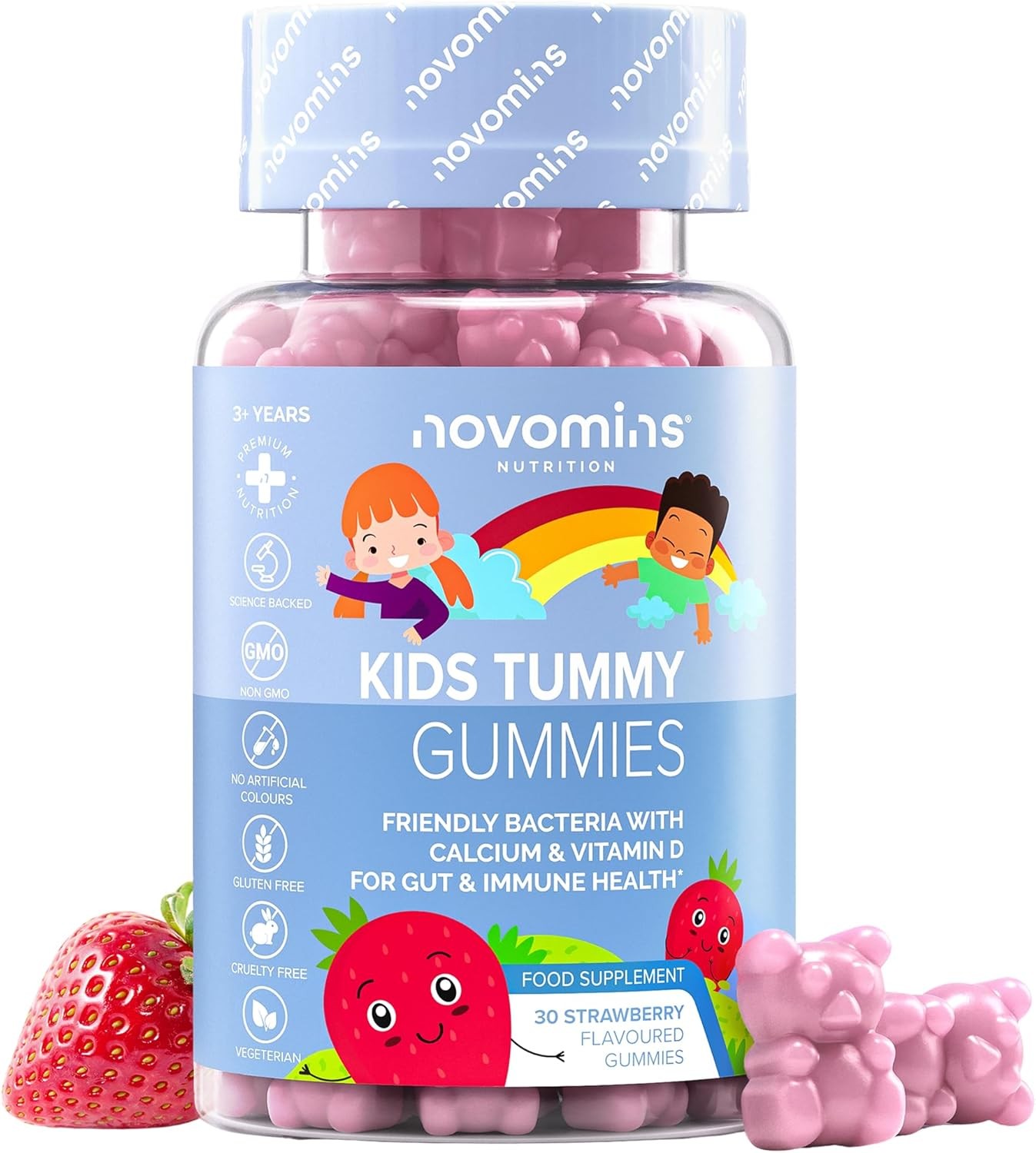 Novomins Kids Probiotic Gummies - 30 Count with Vitamin D & Calcium for Gut Heal