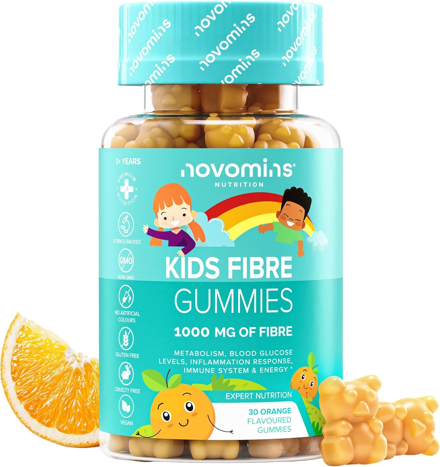 Novomins Kids Fibre Gummies - 1000mg Inulin with Vitamins - Vegan Gluten-Free 30