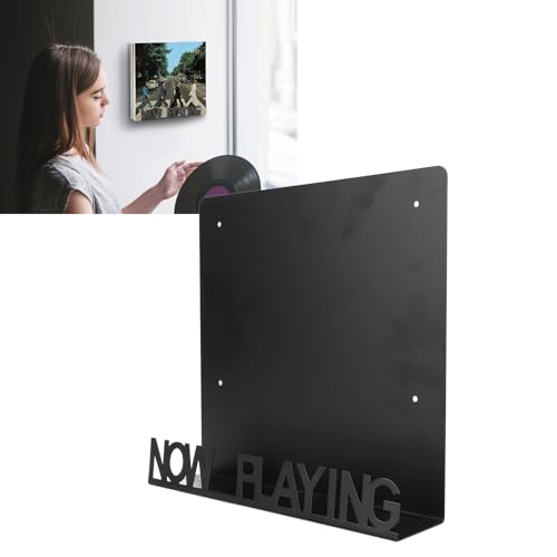 WPESI Now Playing Vinyl Record Stand, Wall Mount Display for Albums, Hanging Record Storage Holder (Black)