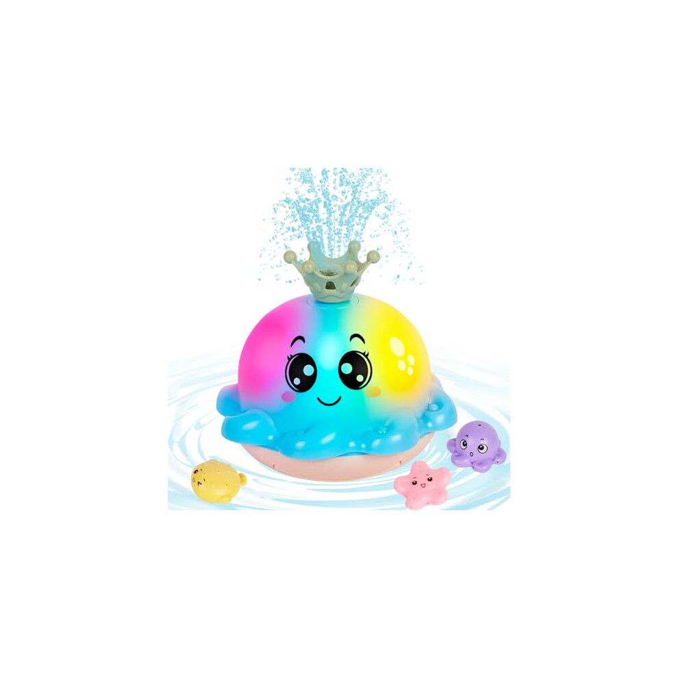Jiosdo 4-in-1 Octopus Bath Toy with Auto-Sensing Water Spray & Colorful Lights - Floating Baby Bath Toy, Model 7022