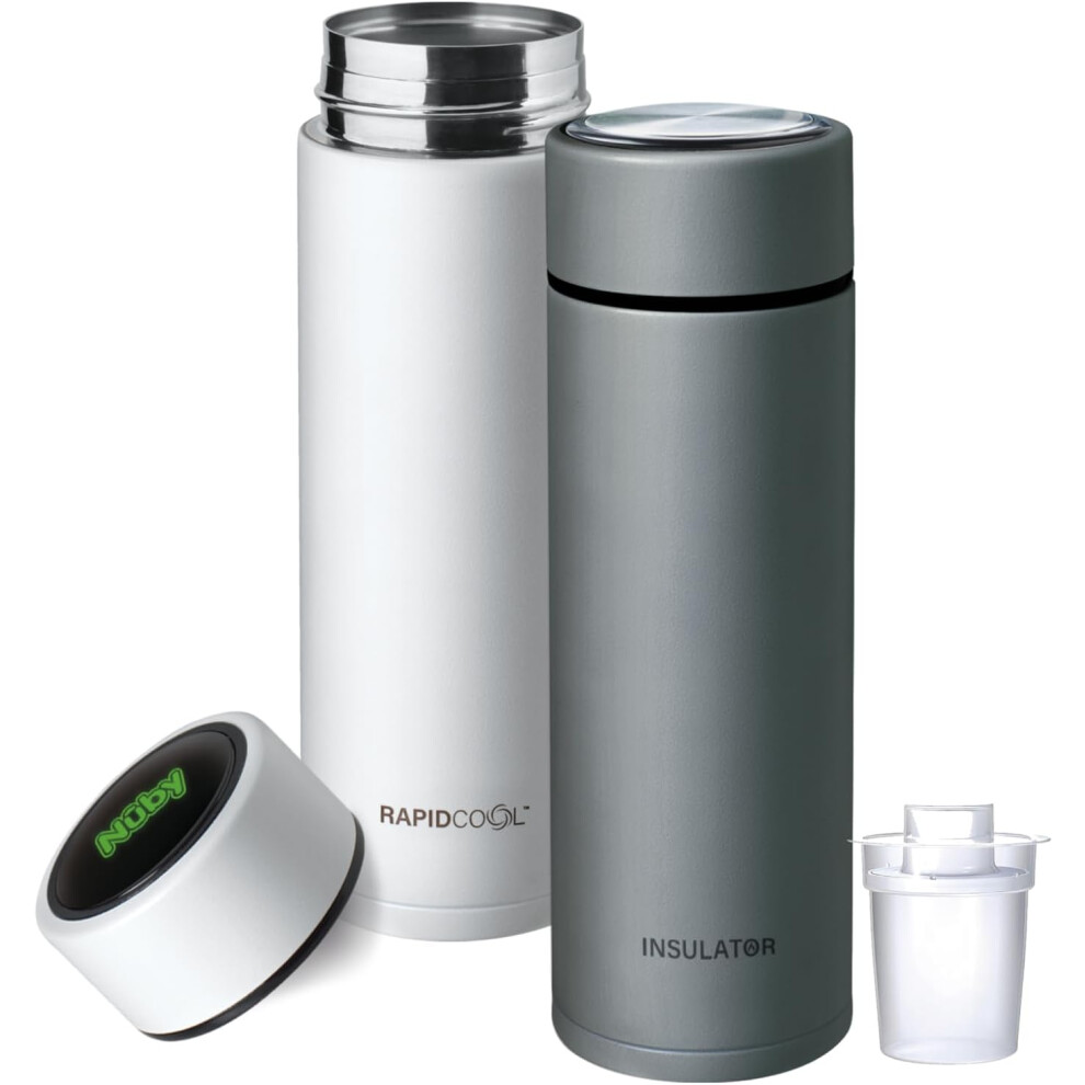 Nuby RapidCool Portable Baby Bottle Maker Twin Pack - Formula Feed in 2 Minutes | Ideal for Travel Bottles and Night Feeds | Includes Milk Powder Dispenser, Digital Lid & Flask (White)