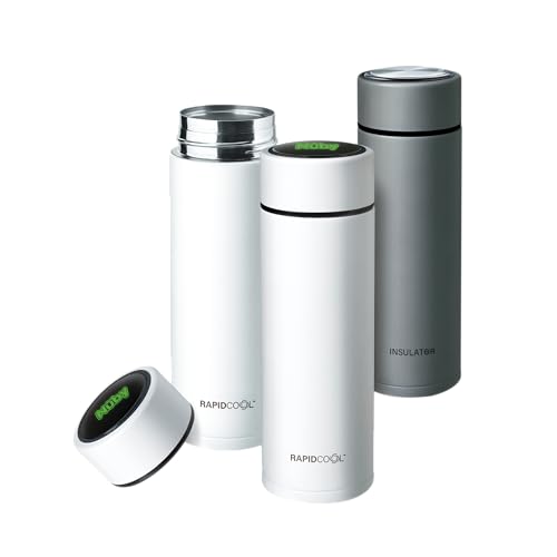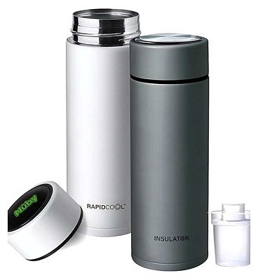 Nuby RapidCool Portable Baby Bottle Making Twin Pack - Prepare A Perfect Formula Feed in 2 Minutes | Includes: 1 Rapid Cool with 1 Digital Thermometer Lids, 1 Powder Dispensers & 1 Flask