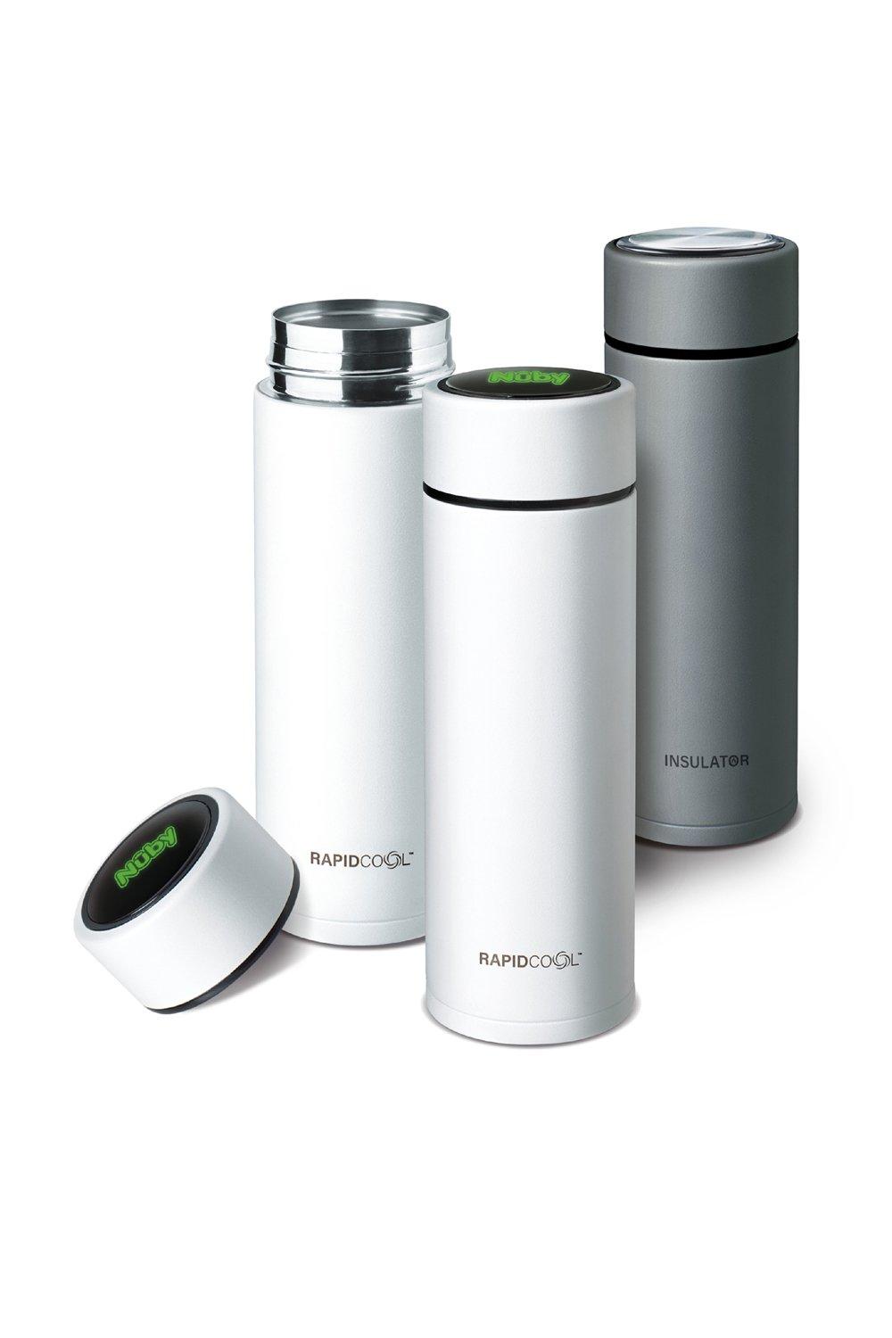 Nuby RapidCool Portable Baby Bottle Making Kit - Prepare A Perfect Formula Feed in 2 Minutes | Includes: 2 Rapid Cool's with 2 Digital Thermometer Lids, 2 Powder Dispensers & Flask