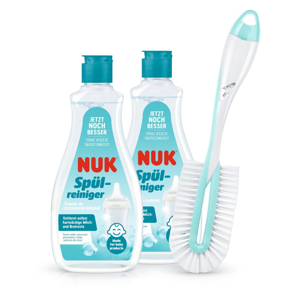 NUK Baby Bottle Cleanser & Bottle Brush | 2 x Bottle Cleaner, 1 x Twist Bottle & Teat Brush | 500 ml | Ideal for Cleaning Baby Bottles, Teats & Acces