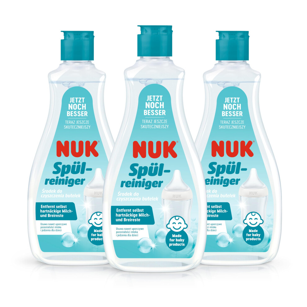 NUK Baby Bottle Cleanser | 500 ml | Ideal for Cleaning Baby Bottles, Teats & Accessories | Fragrance Free Cleaner | pH Neutral | 100% Recyclable Bottle | 3 Count