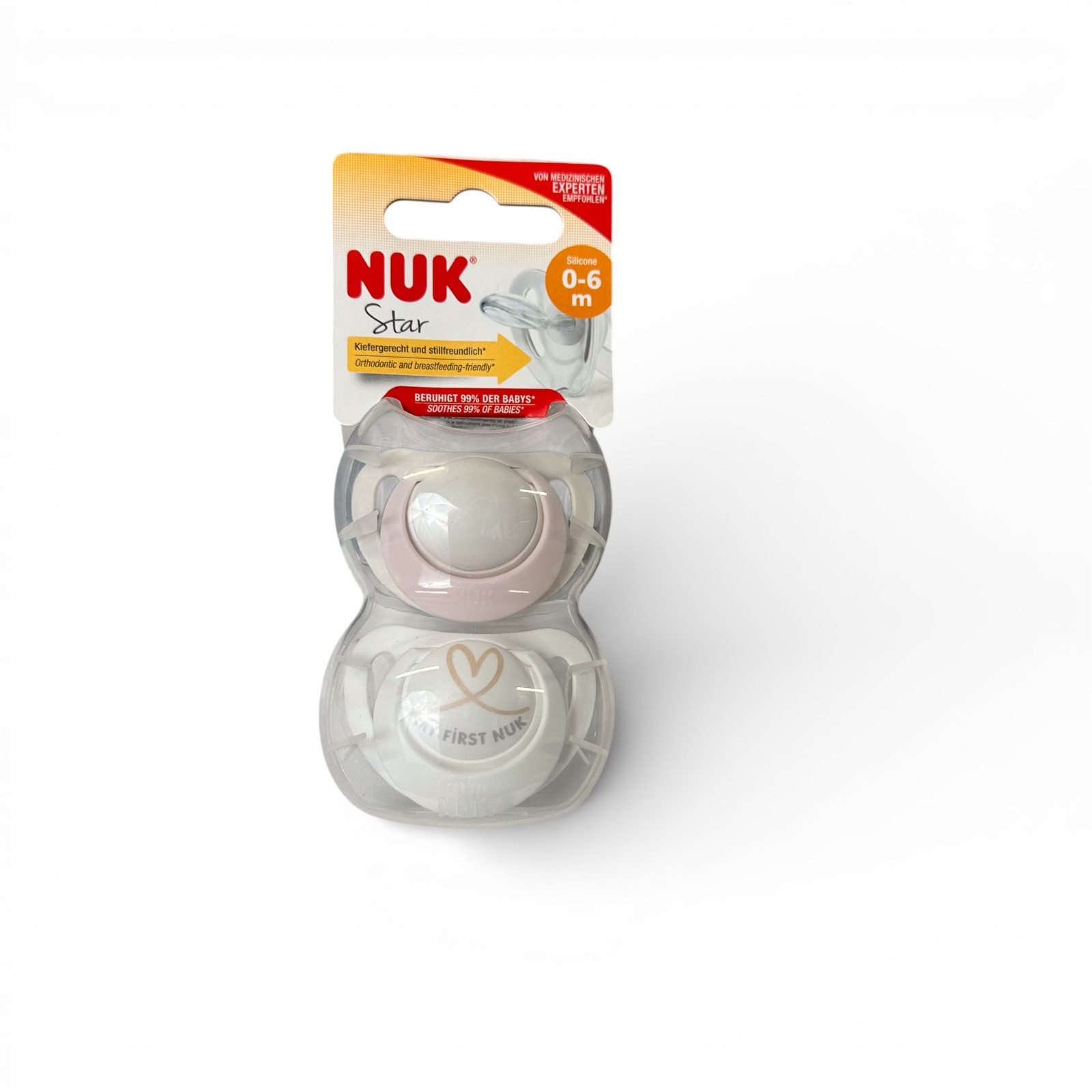 NUK Star Baby Dummy , 0-6 Months, BPA-Free Silicone Soothers, 2 Count, Pink