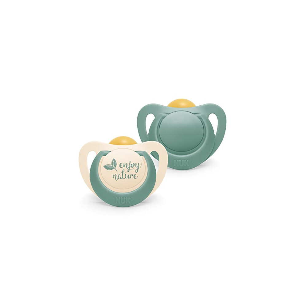 NUK for Nature Baby Dummy | 6-18 Months | Sustainable Rubber Soothers | Over 98% Natural Raw Materials | Eucalyptus Green | 2 Count
