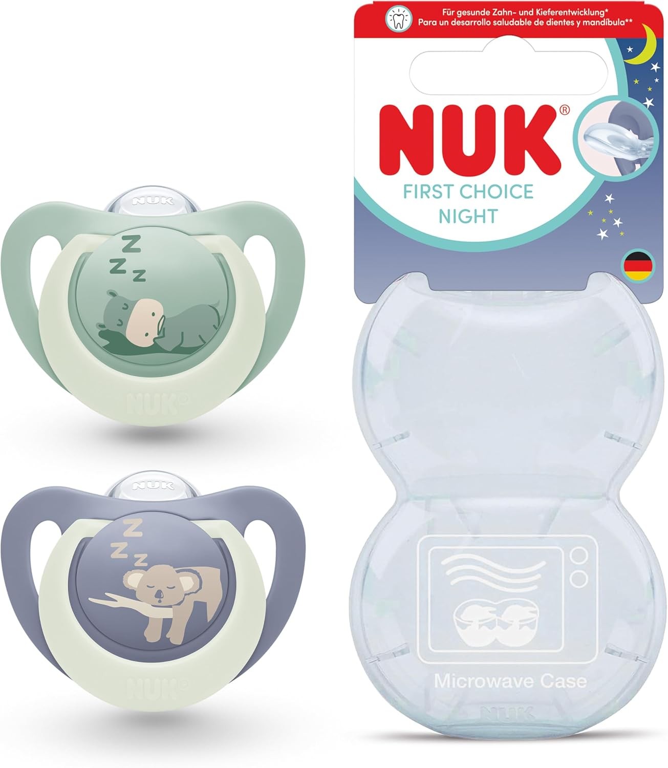 NUK First Choice Night Baby Dummies 0-6 Months Glow in Dark Orthodontic Soothers