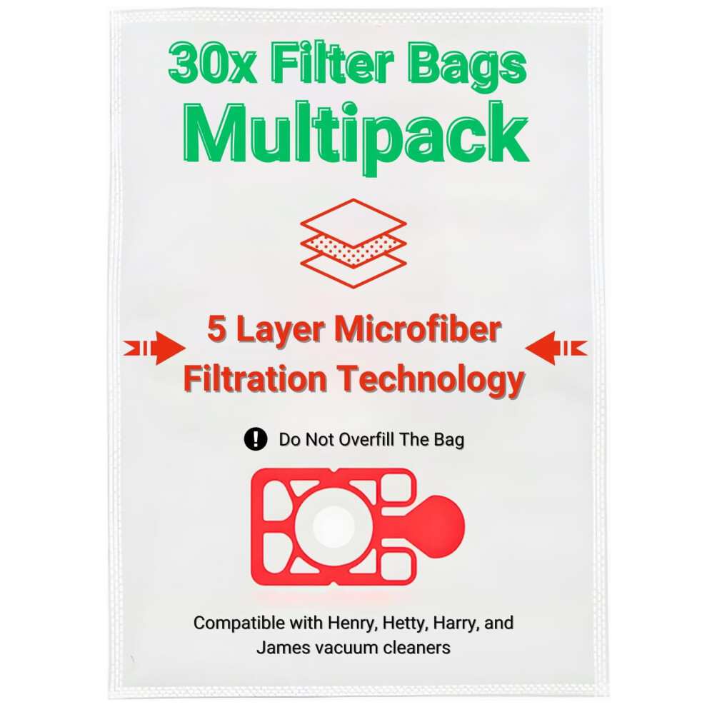 Pack of 30 Numatic Henry Hoover Bags | HEPA-Flo Dust Bags ? Perfectly Compatible with Hetty Hoover bags for Superior Cleaning Performance.
