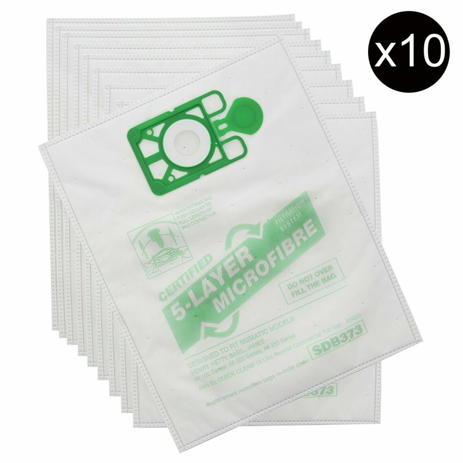 10 x Vacuum Cloth Hoover Bags HEPAFLO Wet & Dry Numatic Charles CVC370 CVC370-2