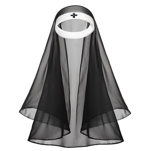 Eioflia Nun Habit Mesh Yarn Cross Gothic Nun Costume Cosplay Headpiece Accessories for Halloween Carnival Party Role Play