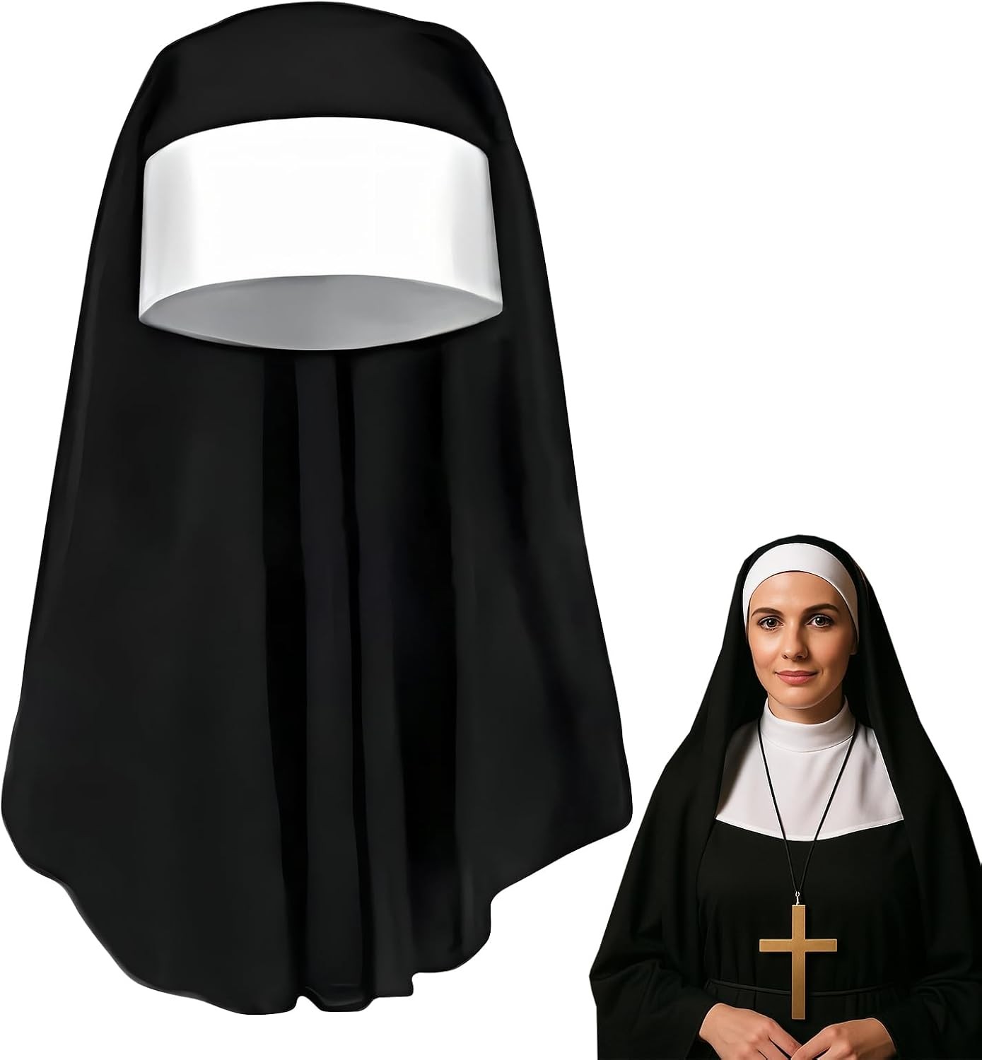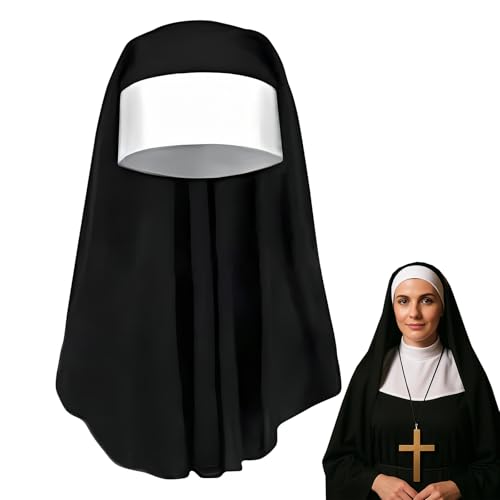 Lezevn 2 Pieces Nun Headpiece Nun Habit Costume Accessory Nun Hat Ladies Religious Habit Church Costume for Halloween Cosplay Party