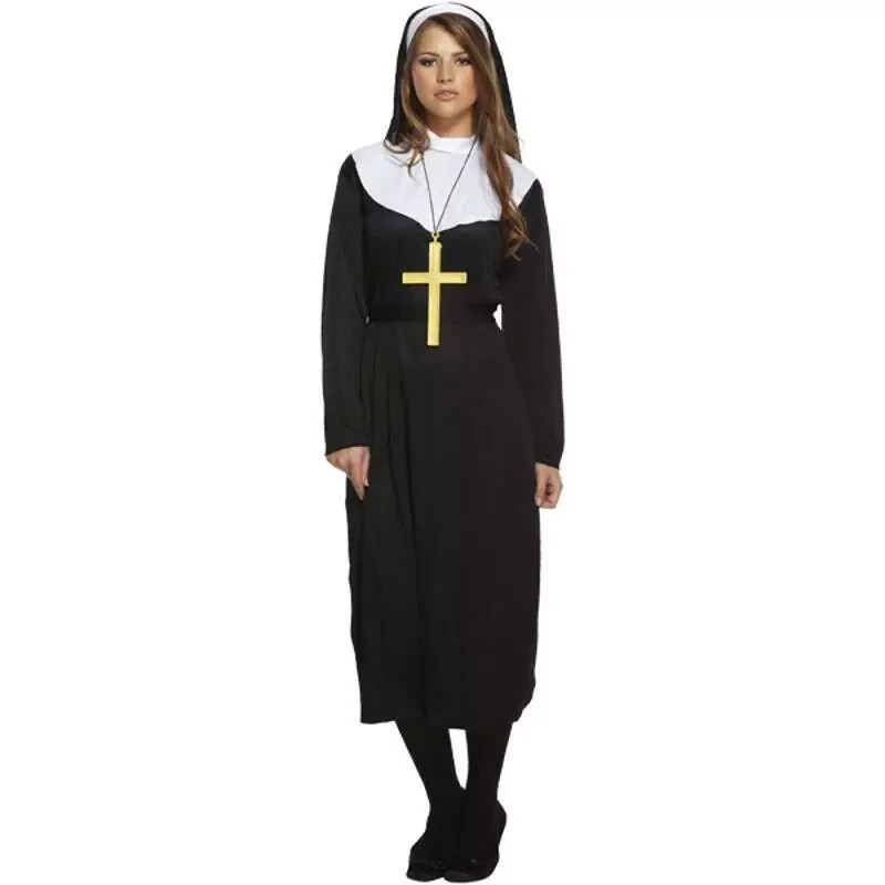 Womens Nun Costume Ladies Habit Fancy Dress With Cross Full Outfit FREE P&P