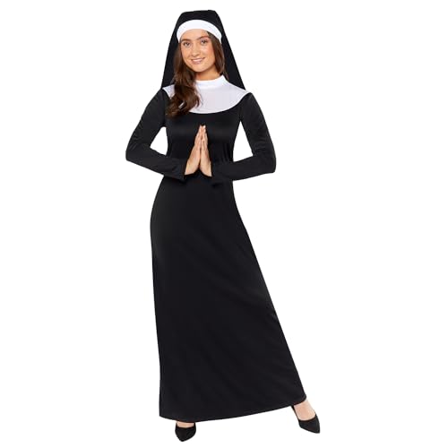 amscan 9918329 Women's Nun Habit & Headpiece Adults Fancy Dress Costume (UK Dress 8-10)
