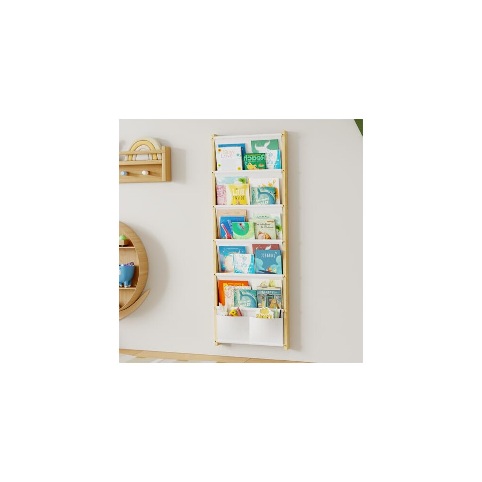 CHOEZON 6-Tier Kids Bookshelf, Children's Bookcase, Magazine and Book Storage Rack, Large Capacity Sling Book Organizer, Book Shelf for Kids Room, Bedroom, Nursery, White and Natural DMCW07WB