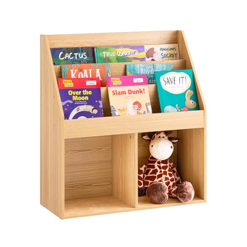 wiqins 4-Tier Kids Book Shelf, Wooden Toddler Bookshelf with Toy Organizer, Montessori Nursery Bookcase for Boys Girls Bedrooms Playroom Classroom
