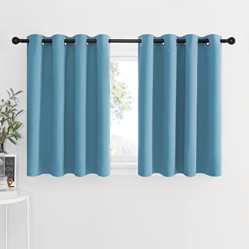 NICETOWN Blackout Window Curtains for Nursery - Eyelet Top Window Treatment Blackout Curtain Panels (Teal Blue=Light Blue, 2 PCs, W52 x L36 + 1.2 inches Header)