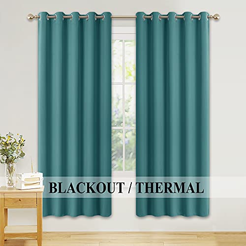 PONY DANCE Eyelet Blackout Curtains - Privacy Protected Curtain Drapery Set for Bedroom Decor Window Treatment Blinds for Nursery, 2 Panels, Width 66 Inch x Drop 72 Inch, Sea Teal