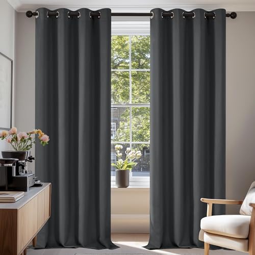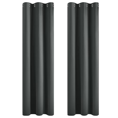 Deconovo Noise Reducation Curtains Eyelet Blackout Curtains Blackout Ring Top Curtains Nursery Curtains for Wedding Dark Grey 42 x 72 Inch 2 Panels
