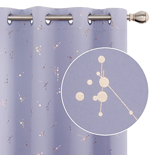 Deconovo Blackout Curtains Eyelet Super Soft Gold Printed Constellation Nursery Baby Curtains for Living Room, 46 x 90 Inch(Width x Length), Light Purple, 2 panels