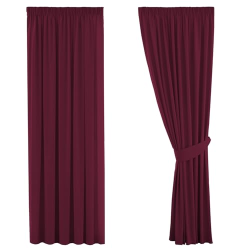 Deconovo Solid Pencil Pleat Curtains Super Soft Thermal Insulated Tape Top Blackout Curtains for Nursery 66 x 90 Red Two Panels