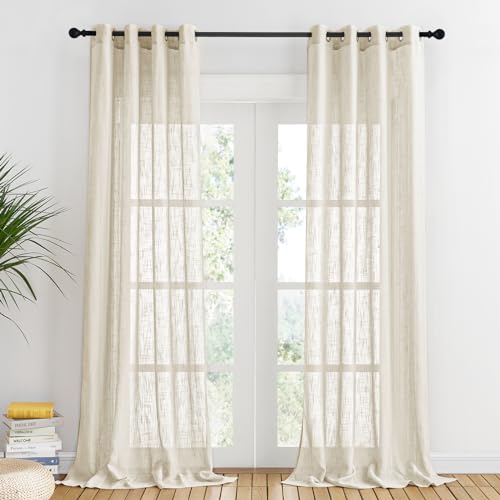 PONY DANCE Extra Long Voile Curtains for Living Room - Thick Kids Room Decoration Nautral Semi Transparent Privacy Protected Window Net Curtains for Nursery Room, 52 x 95 Inches, Set of 2, Beige