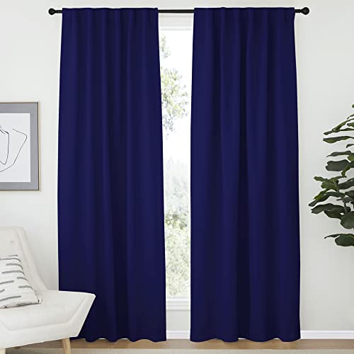 Deconovo Thermal Insulated Blackout Curtains Energy Saving Decorative Room Darkening Curtains Nursery Curtains for Kitchen 66 x 72 Inch Navy Blue 2 Set of 2