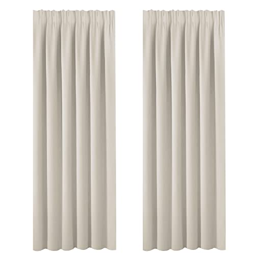 Pencil Pleat Curtains - (90 inch x 90 inch, 2 Panels) Sunlight Blocked Thermal Curtain for Privacy Protected & Home Decoration Large Nursery Curtains for Living Room/Bedroom, Light Beige