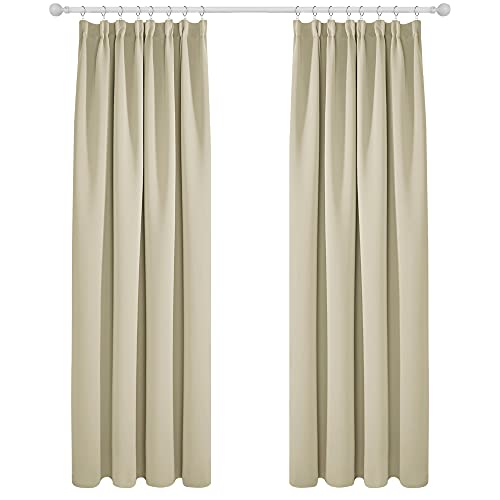 H.Versailtex Pencil Pleat Curtains 90" Drops, Thermal Insulated Noise Reducing Window Curtains, Light Block Privacy Protect Nursery Long Panels for Bedroom, 66" Width x 90" Drop, Beige, 2 Panels