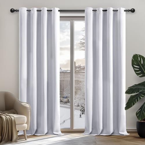 DWCN Blackout Curtains for Bedroom Eyelet Curtains for Living Room Window Treatments White Nursery Curtains Black Out Curtains 52 x 54 Inch 2 Panels