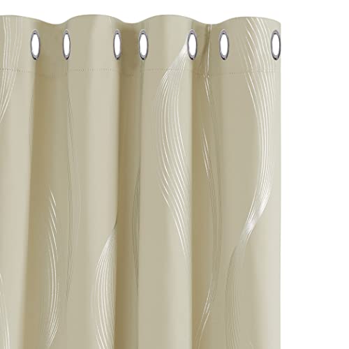 Deconovo Decorative Silver Wave Line Foil Printed Blackout Curtains Thermal Insulated Eyelet Curtains for Baby Nursery 52 x 54 Inch Beige Two Panels