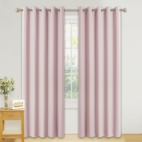 Deconovo Nursery Decoration Thermal Insulated Blackout Curtains Material Window Treatments Room Darkening Top Eyelet Curtains for Bedroom 52"x 72" Baby Pink 1 PAIR