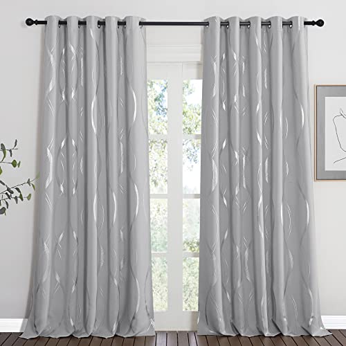 Deconovo Eyelet Room Darkening Curtains, Window Treatment Silver Wave Line Foil Printed Blackout Curtains for Nursery, 66 x 72 Inch(Width x Length), Light grey, 2 panels