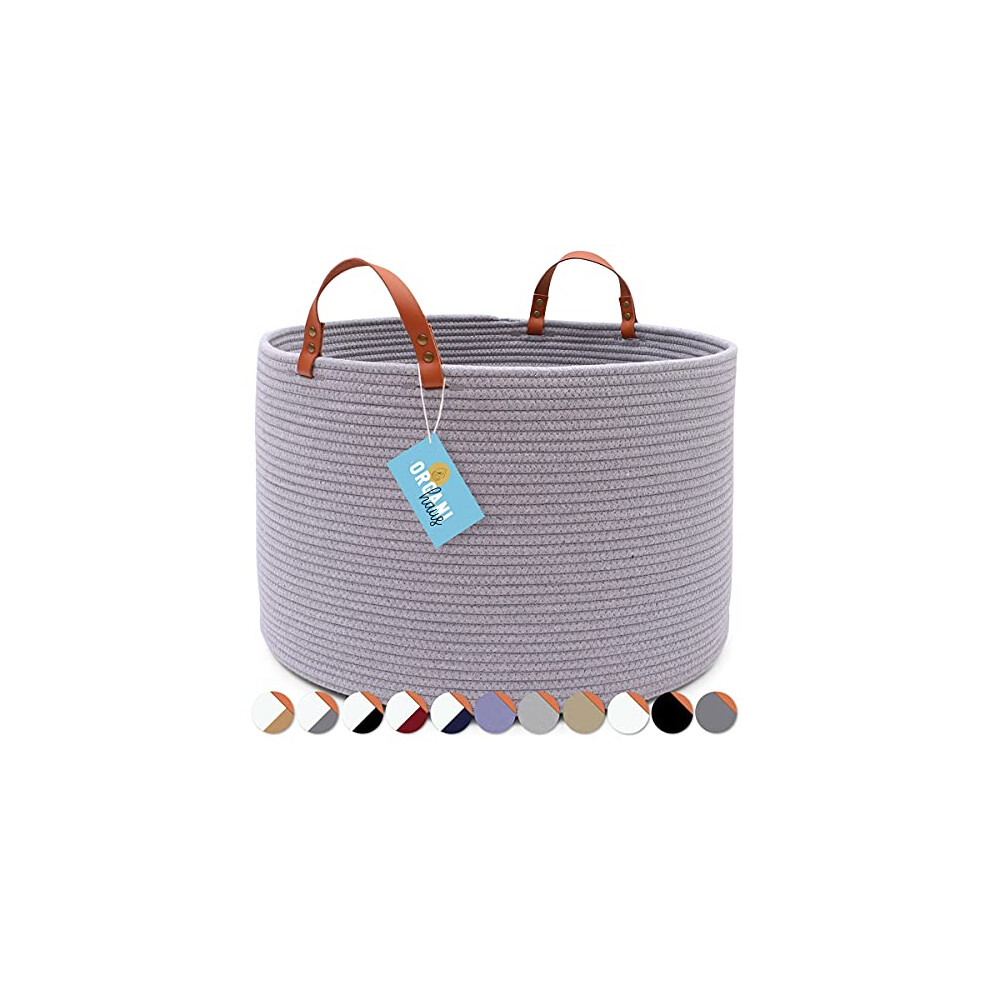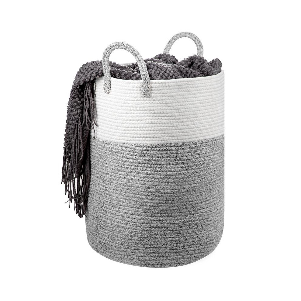 (Grey) 58L Cotton Rope Basket Large Blanket Woven Storage Organiser Nursery Laundry Rope Basket Large Blanket Woven Storage Organiser Nursery Laund