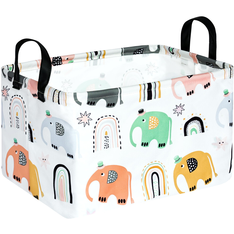 FANKANG Storage Basket, Nursery Hamper Canvas Laundry Basket Foldable with Waterproof PE Coating Large Storage Baskets for Kids Boys and Girls, Office, Bedroom, Clothes,Toys(Love Elephant)